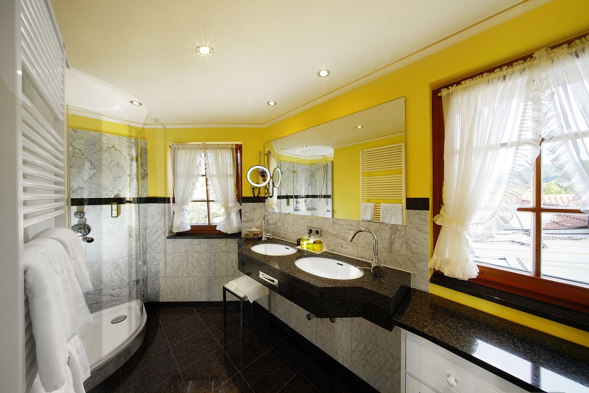 Zur Ausstattung gehören ein kuscheliges Doppelschlafzimmer, ein extravagantes Badezimmer in Naturstein mit Doppelwaschtitsch, Dusche, Haar Föhn, Kosmetikspiegel und WC. Im Raum lädt eine gemütliche Sitzecke zum Lesen ein und es steht Ihnen ein eigener Sekretär zum Arbeiten zur Verfügung.
