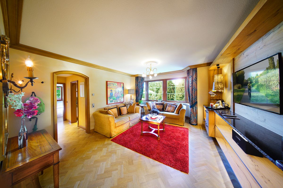 Schloß Grohl 1, c’est notre élégante suite avec séjour séparé. Elle est pourvue d’un téléviseur LCD à écran plat, d’un canapé confortable, d’un bureau avec accès gratuit au WIFI. Le parquet en bois massif lui donne une touche raffinée et chaleureuse. Dans la chambre double, vous trouverez un deuxième téléviseur LCD à écran plat ainsi qu’un secrétaire et même un valet de nuit.